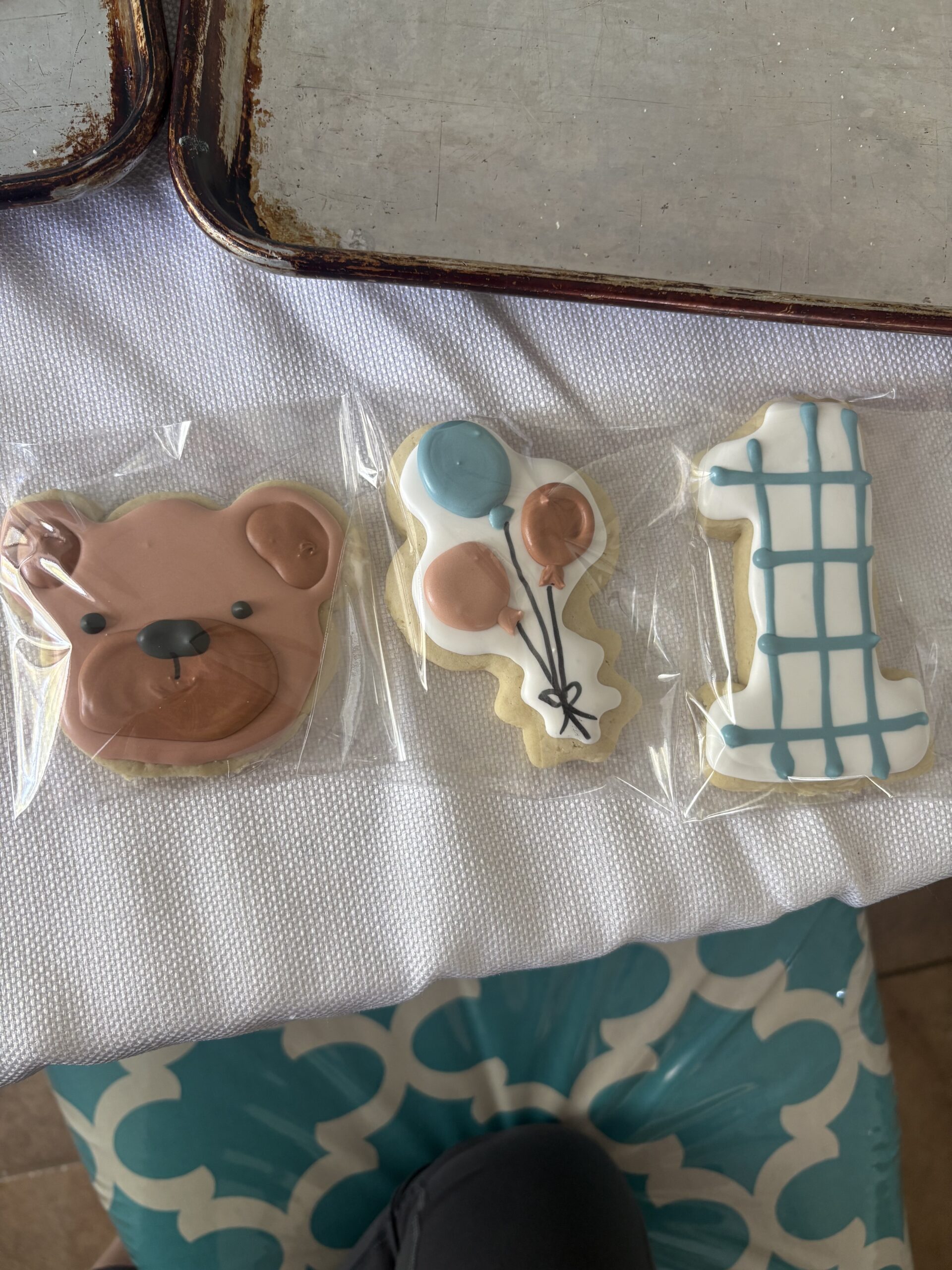 Oh, I almost forgot. I like to make and decorate sugar cookies for special occasions. A cute friend of mine has had me make cookies for her baby showers and children’s first birthday’s. It gives me the opportunity to practice new techniques and is a creative outlet for me. Here is a picture of the latest ones I made.