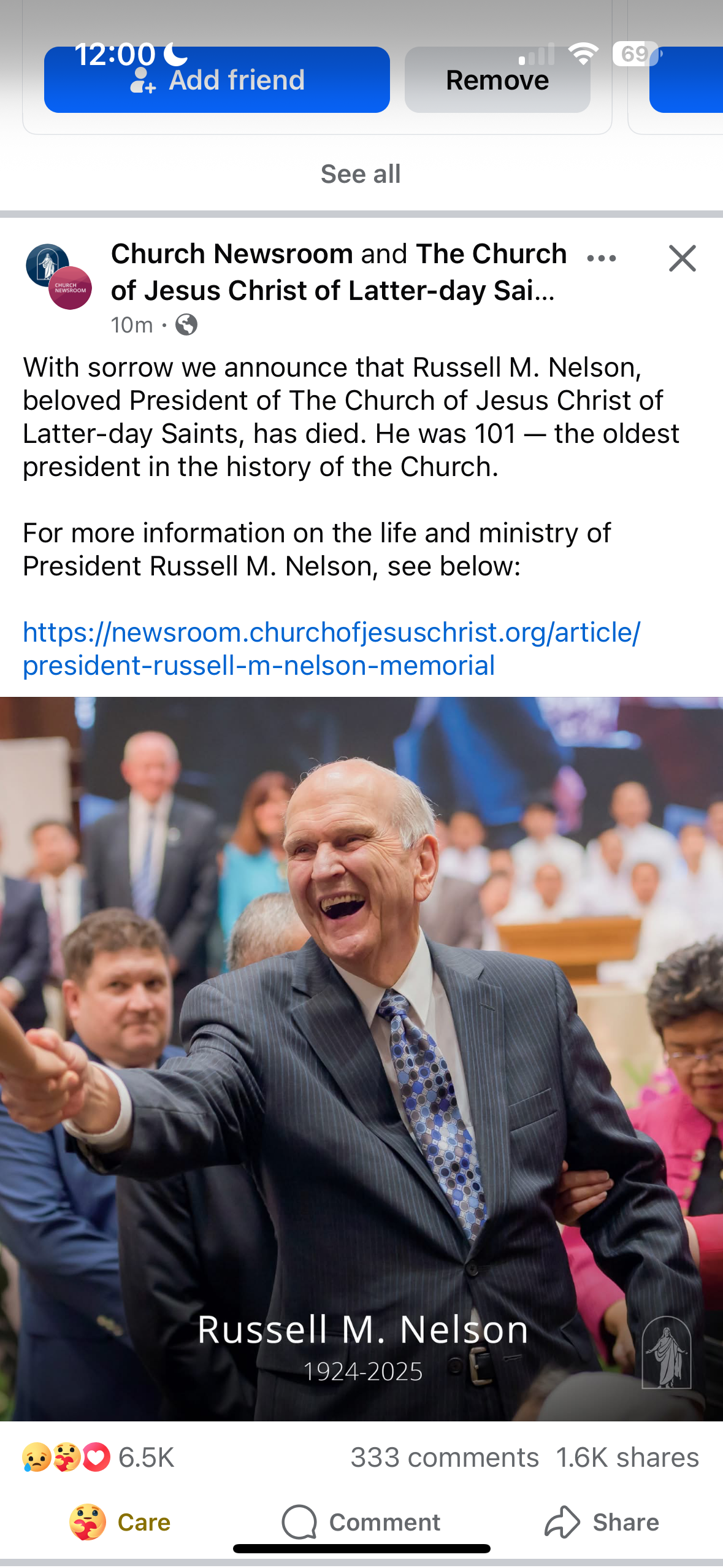 While we were visiting with them, they shared with us that they are in the same stake as President Nelson! Later that night, when we were back in Provo at Audrey and Grace’s apartment, we found out that President Nelson had passed away just hours earlier. It was very strange realizing that we were literally down the street from the prophet when he passed away. His leadership taught me a lot and I am so grateful for the life he lived. His teachings changed my life for the better. I grew spiritually during his time as prophet and president of our church.